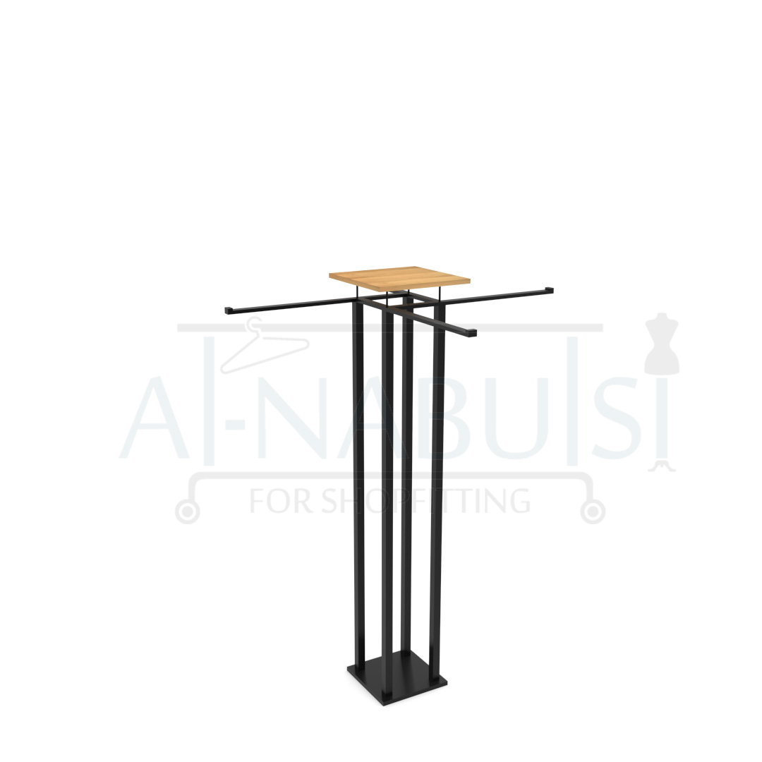 يتميز بوجود قاعدة من الرخام الأسود تمنحه ثباتاً وفخامة في المظهر، مع رف خشبي علوي يمكن استخدامه لعرض الحقائب، الإكسسوارات، أو الملابس المطوية لإضافة بعد بصري مميز للعرض.