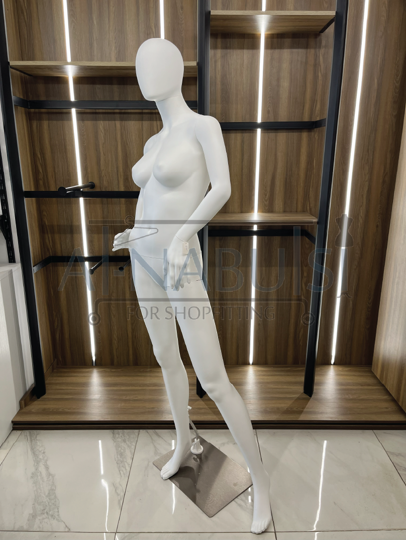 ارتفاعه 175 سم مع مقاسات متناسقة (صدر 86 سم – خصر 61 سم – ورك 86 سم)، ما يجعله مثالياً لعرض الفساتين، البدل، المعاطف، وأنواع الملابس النسائية الأخرى.