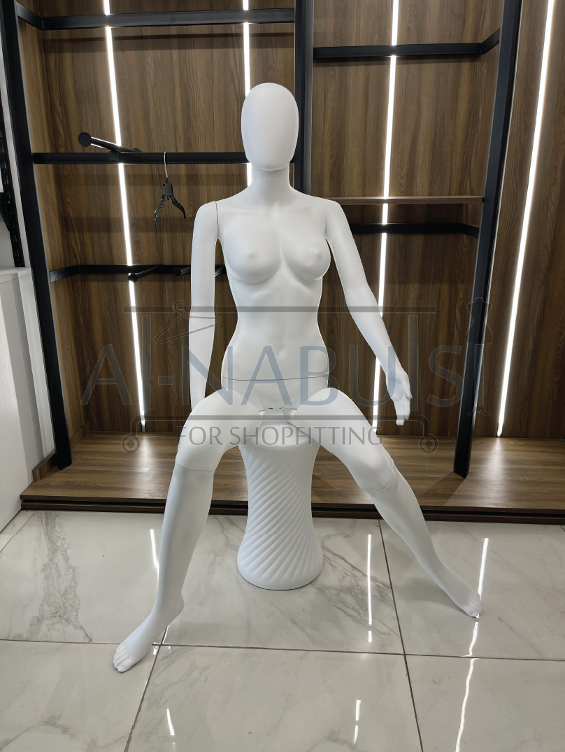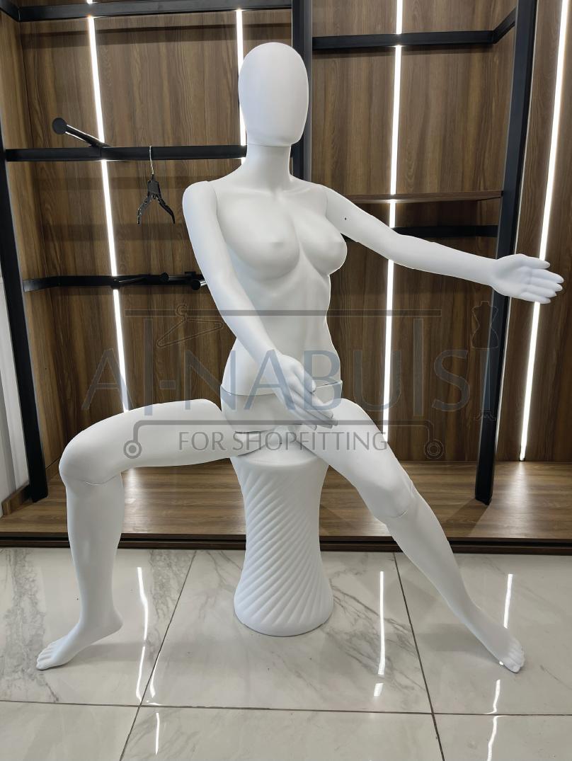 الأرجل متحركة وقابلة للتعديل مما يتيح مرونة في العرض وتغيير وضعية المانيكان بسهولة.