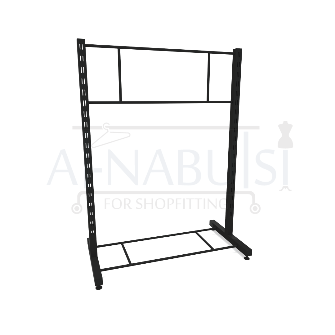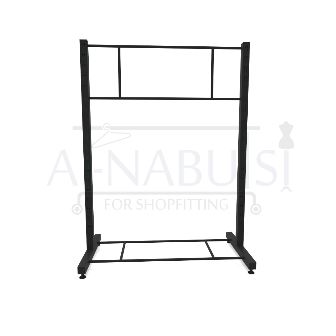 ستاند عرض وسطي جندول من النابلسي لتجهيز المحلات يتميز بتصميم متين وأنيق، مكوّن من عمودين مفرزين من الجهتين لتركيب مختلف أنواع الإكسسوارات بطول 90 سم مثل الأذرع، الأرفف أو علاقات الملابس.
