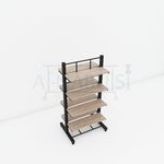 ستاند عرض وسطي جندول من النابلسي لتجهيز المحلات بتصميم فريد يجمع بين العملية والجمال، مكوّن من عامودين مفرزين من الجهتين لسهولة تركيب الإكسسوارات بطول 90 سم، مع سلمين علوي وسفلي لتعزيز الثبات.