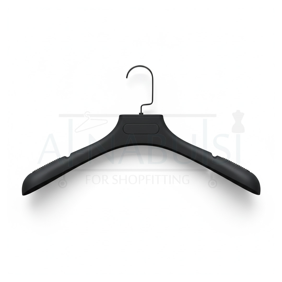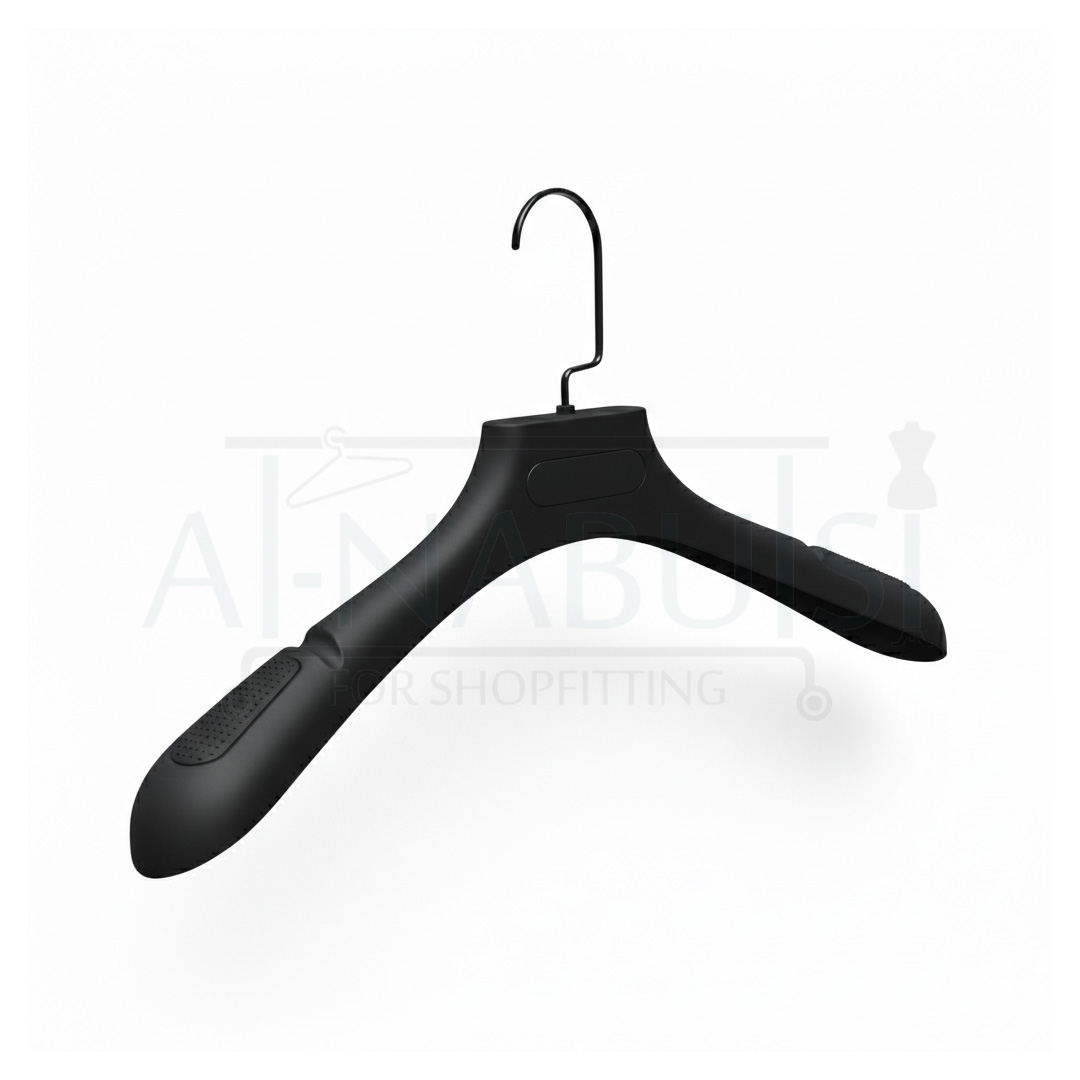 اللون الأسود الخشن يمنحها مظهراً عصرياً واحترافياً يبرز الملابس المعروضة ويعطي شعور بالقوة والمتانة في العرض داخل البوتيكات والمحلات الحديثة.