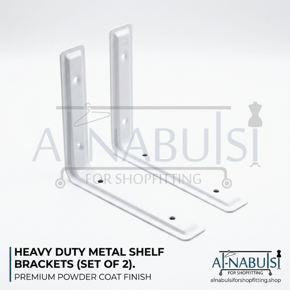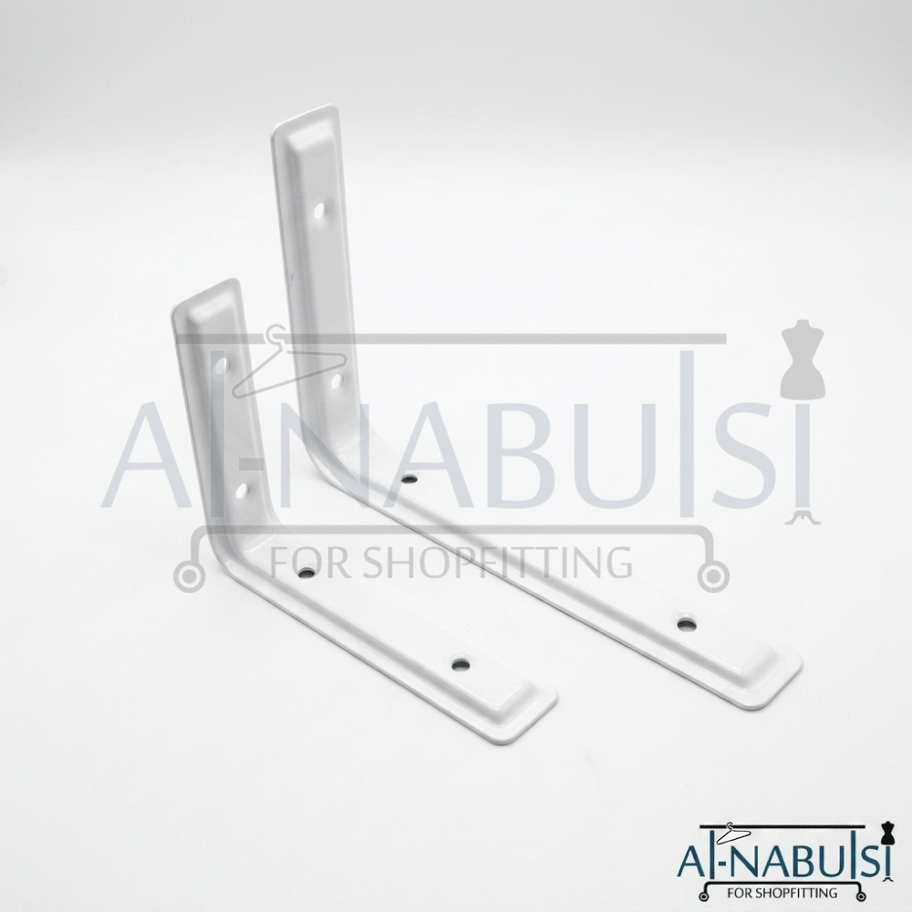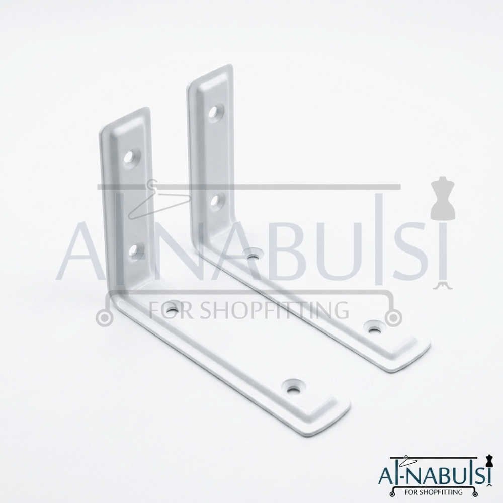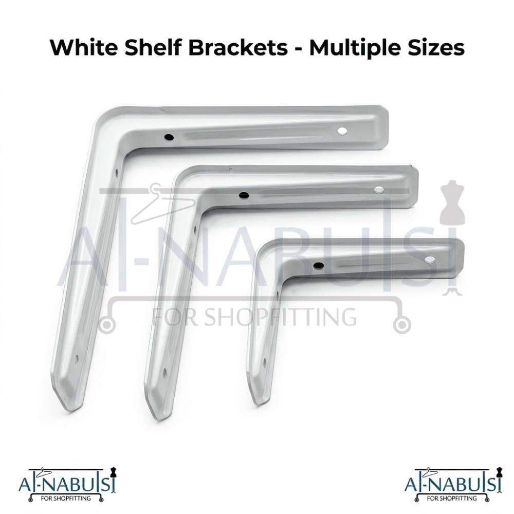 حمالات رف جدارية باللون الأبيض بتصميم عملي وأنيق، مثالية لتركيب الرفوف بطريقة ثابتة وآمنة مع الحفاظ على مظهر نظيف وعصري يناسب مختلف أنواع الديكور.