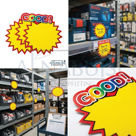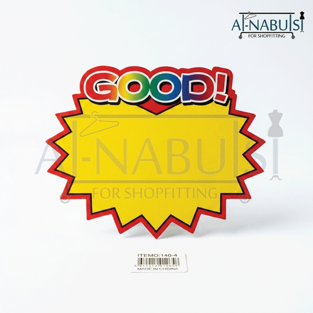 يتميز الليبل باللون الأصفر مع هوامش حمراء لإبراز المعلومات بسرعة وسهولة، ويأتي مع كلمة "Good!" لتضيف لمسة مميزة وجذابة للمنتجات.