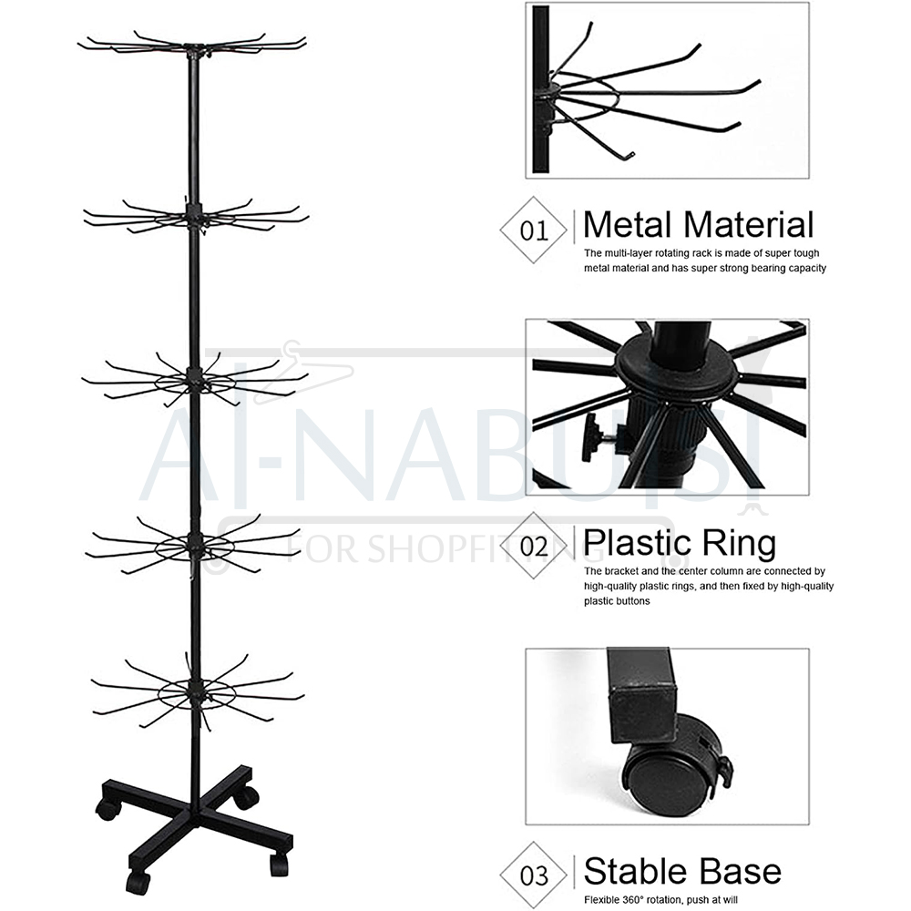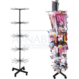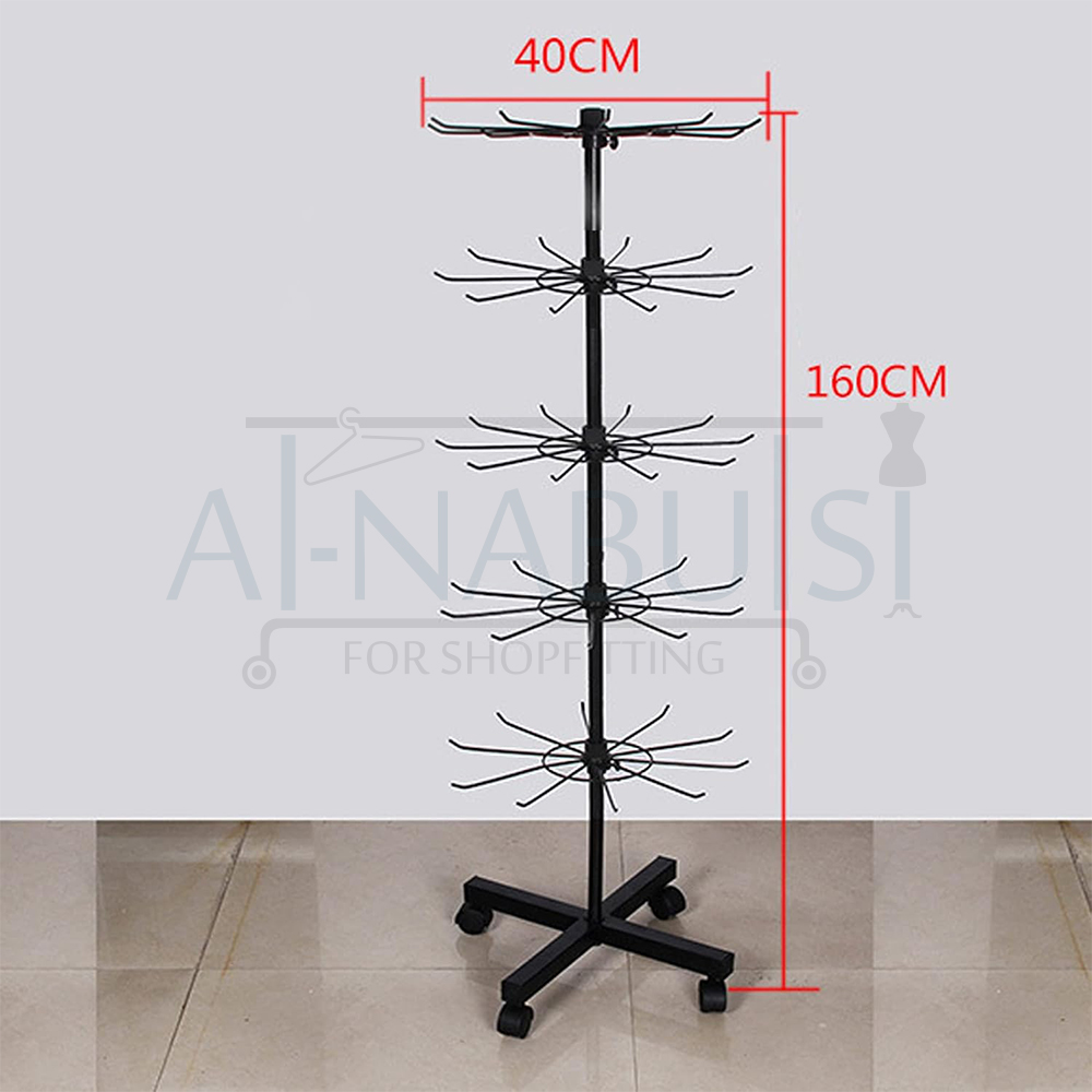 Premium jewelry and accessories stand made from durable metal with a stable base for maximum stability. Features five rotating butterfly-shaped tiers, each 40 cm in diameter, allowing easy access to all accessories in an organized and attractive way. Perfect for stores and exhibitions, providing a professional and elegant display for your products.