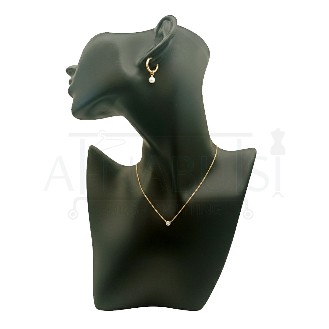Decorative half head display designed for professional presentation of jewelry sets including necklaces and earrings.