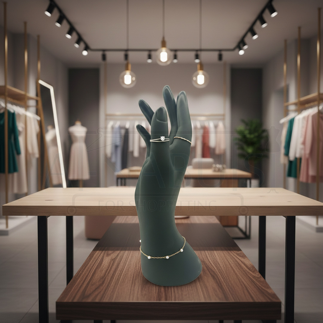The hand features realistic details and a natural curved shape, giving jewelry a premium appearance during display. The wide base ensures excellent stability on shelves or inside glass showcases, while the white or black finish adds a touch of elegance to match any store décor or boutique theme.