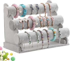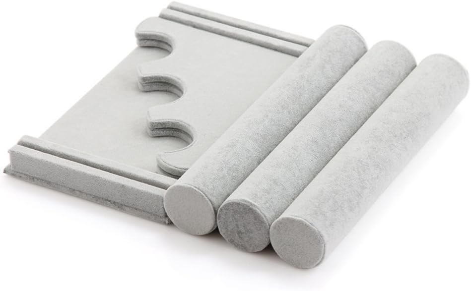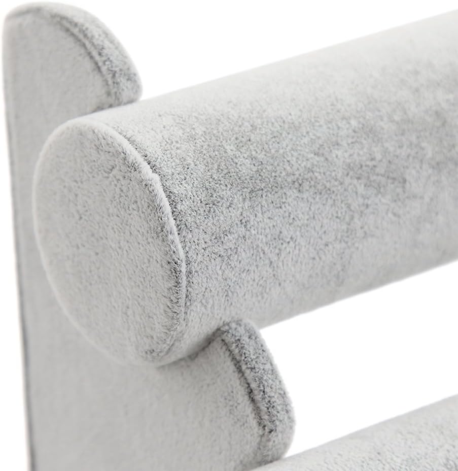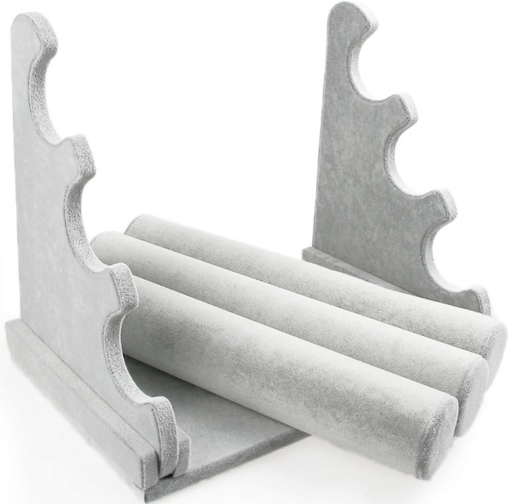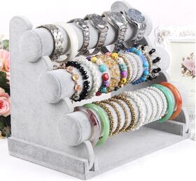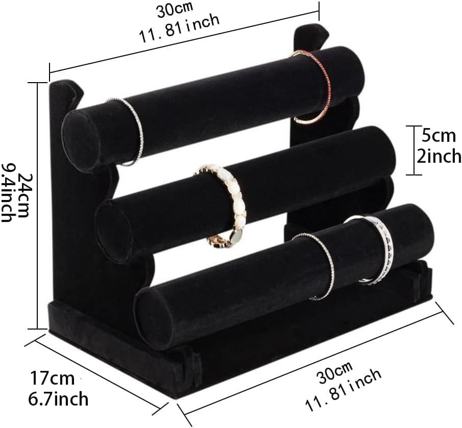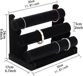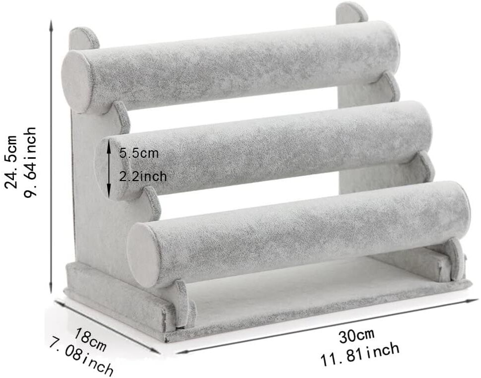 A 3-tier bracelet display stand covered in soft velvet, designed in a tiered structure to showcase bracelets and watches elegantly and neatly.