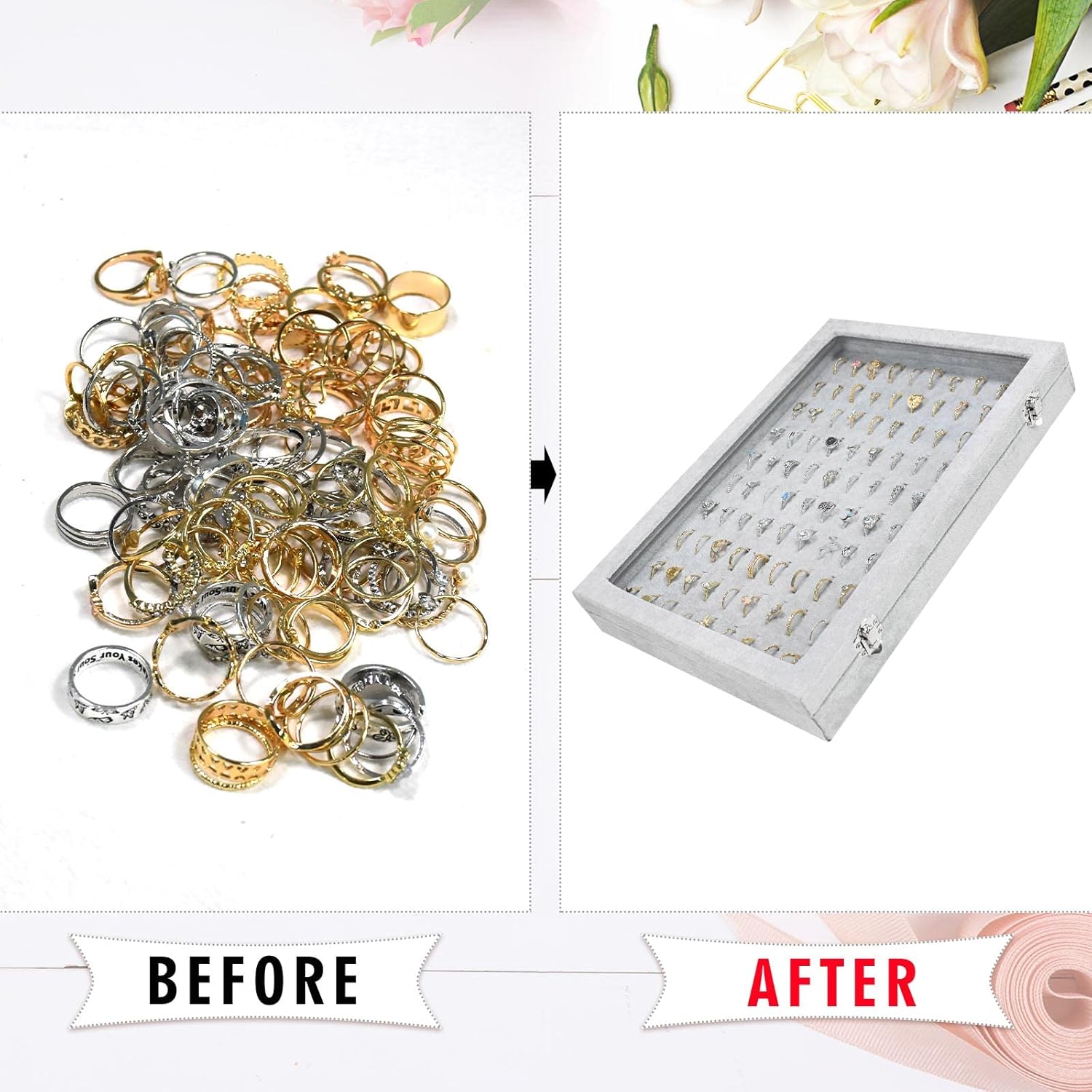 This elegant box combines protection and presentation, featuring a clear acrylic lid that keeps rings visible while protecting them from dust and handling.