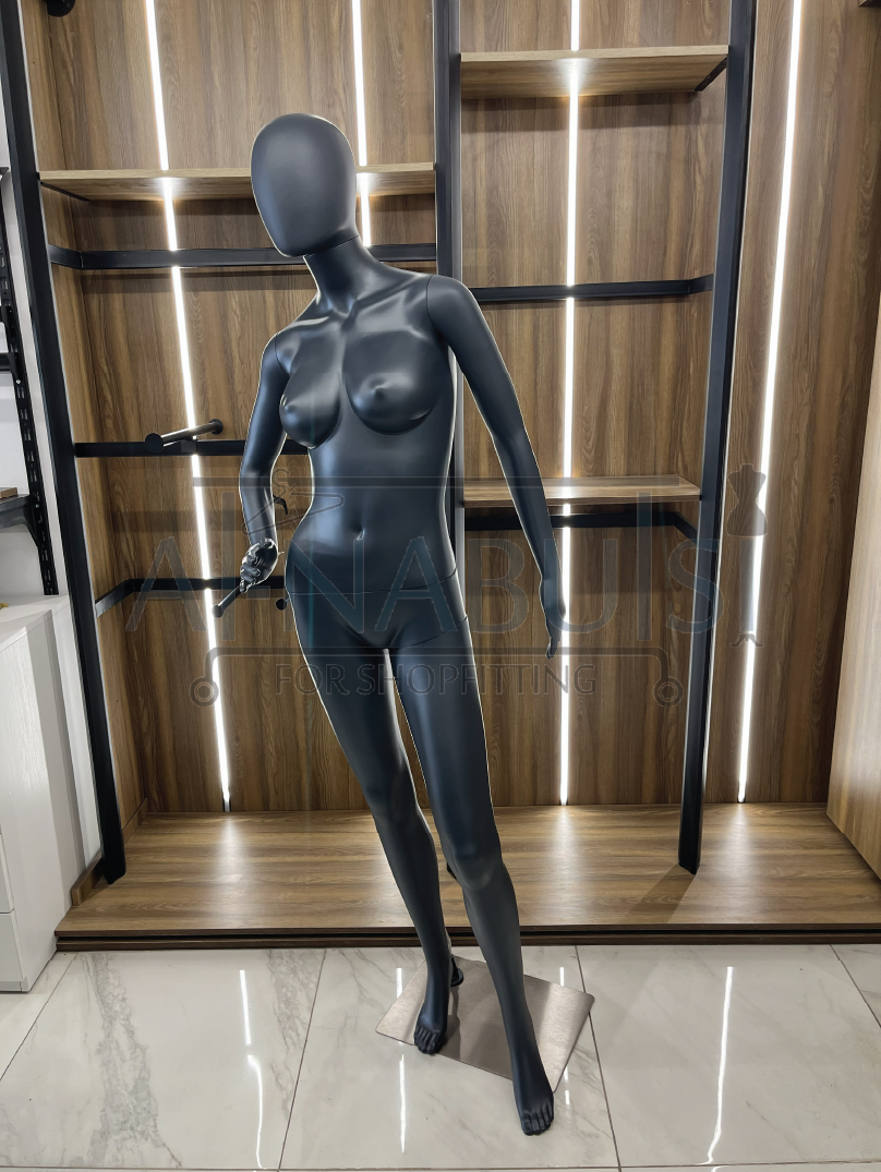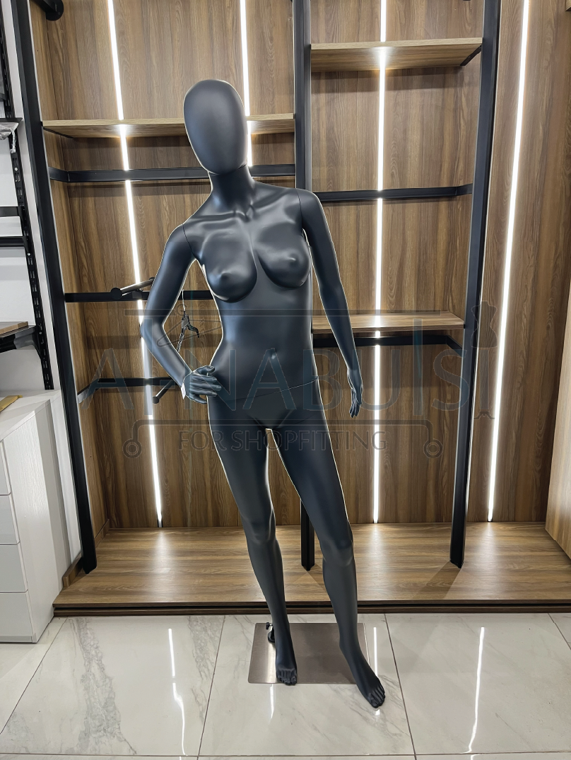 Full-body female mannequin with a stylish standing pose and right hand on waist, offering a confident and elegant look for fashion displays.