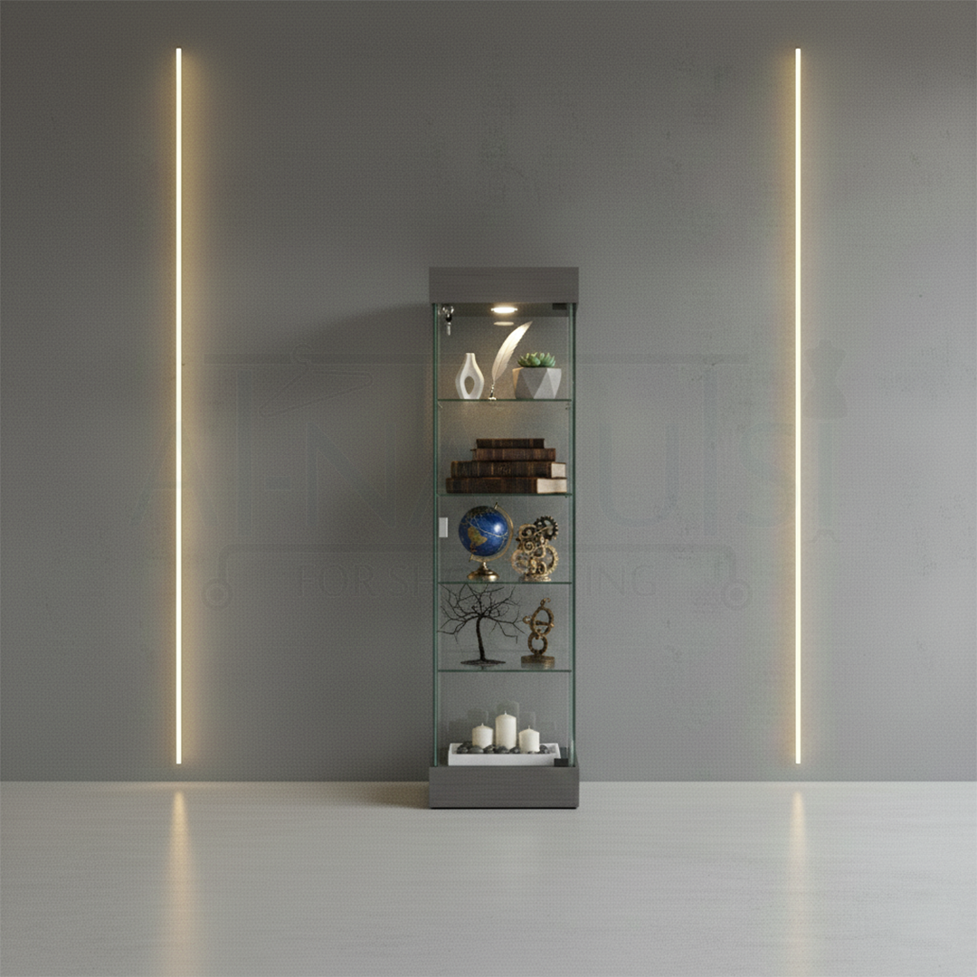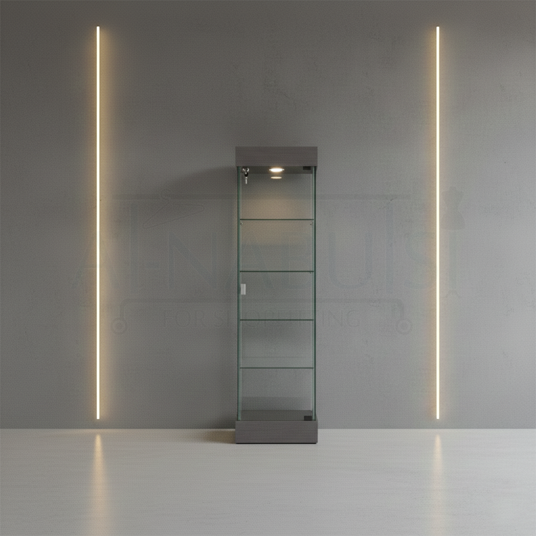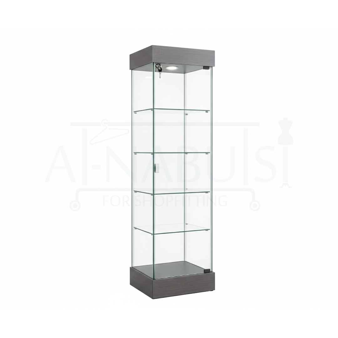 This tempered glass display cabinet is designed for secure and elegant product presentation in retail stores and exhibitions.