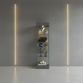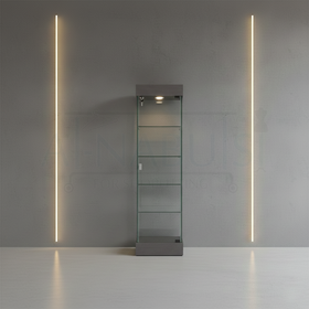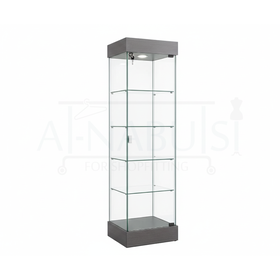 With a height of 200 cm, width 40 cm, and depth 40 cm, it features 5 glass shelves that allow organized and clear product display.