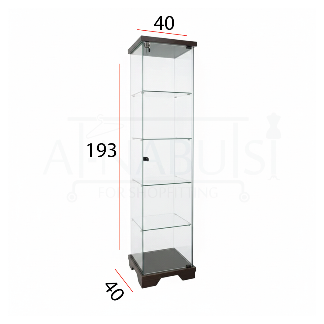 With a height of 193 cm, width 40 cm, and depth 40 cm, it features 5 display shelves that offer excellent visibility and organized presentation.