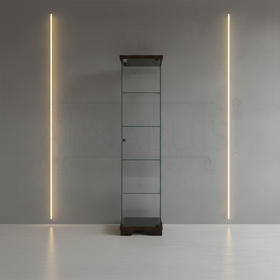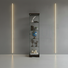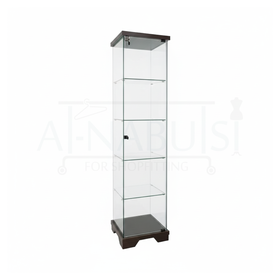 The showcase includes wooden base and top frames for enhanced stability and a refined look, along with a secure lock and key to protect valuable items.