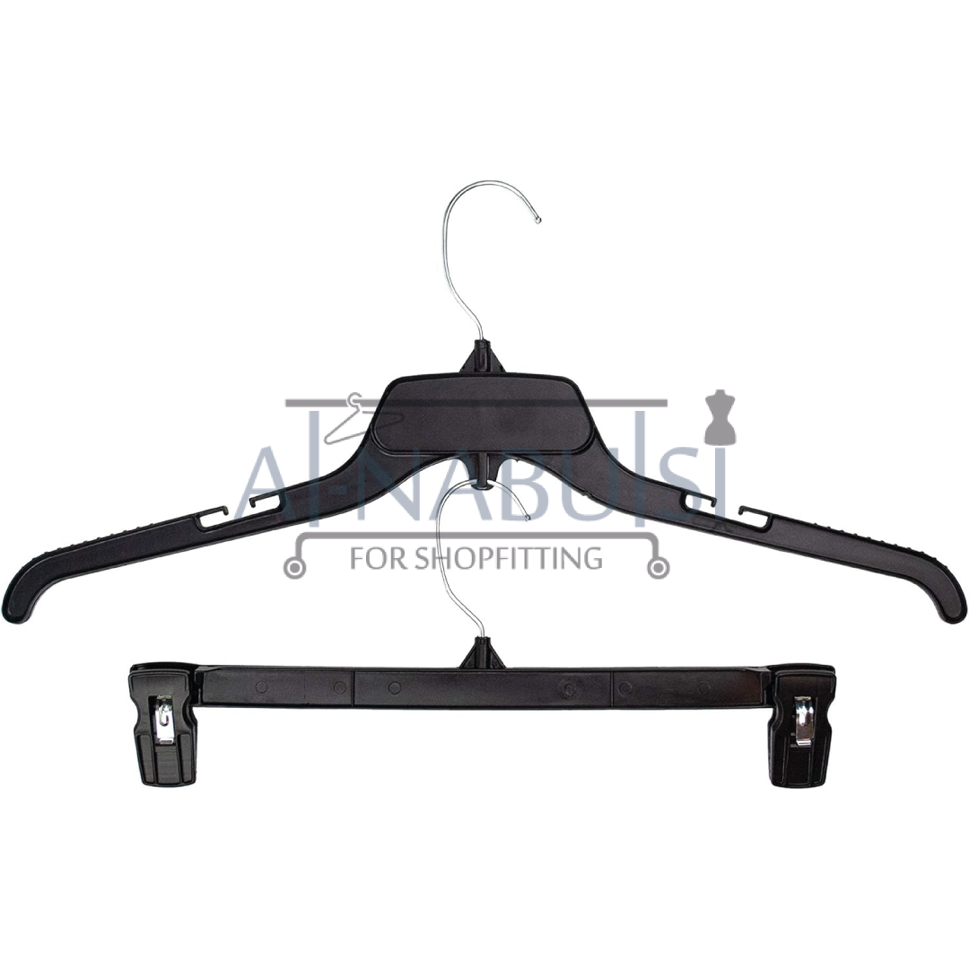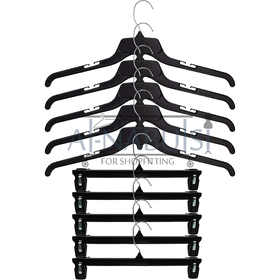 - The Model 484 Black Shoulder Hanger comes with the 6012 Clip, providing the perfect solution for a neat and elegant garment display. When purchasing this product, you receive a dozen shoulder hangers and a dozen clips, if choose carton carton of each, making wholesale buying convenient and ideal for retail stores.