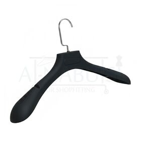 The black rubber finish offers an anti-slip surface and a premium retail appearance, making it ideal for clothing stores and luxury wardrobes.
