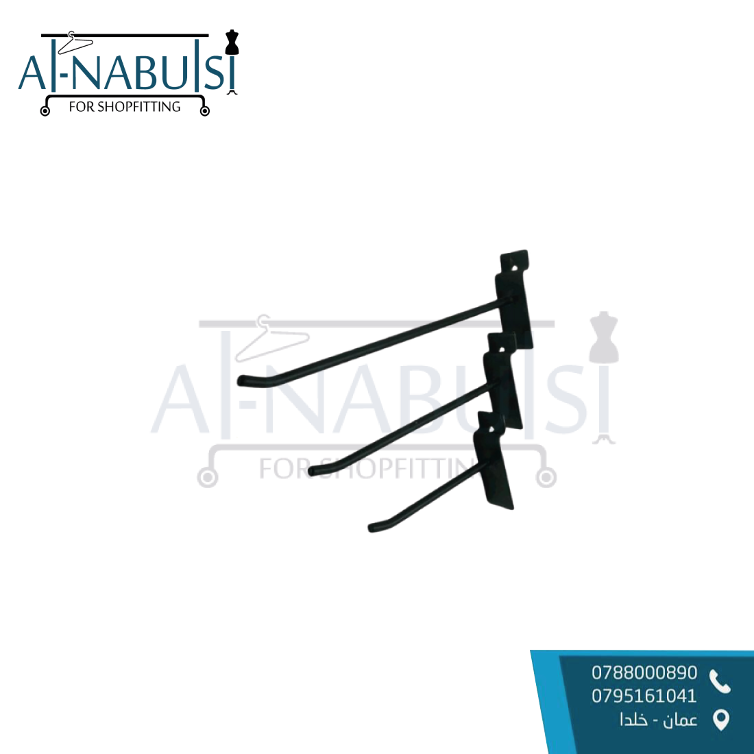 يمكن تركيبه على الجدران أو ضمن وحدات العرض، مع إمكانية تغيير توزيع الهوكات بسهولة حسب الحاجة.