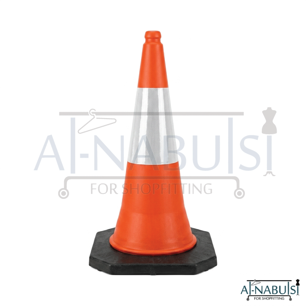 The cone is equipped with a heavy black rubber plastic base that provides excellent stability and resistance against wind and impact, making it suitable for outdoor and heavy-duty use.