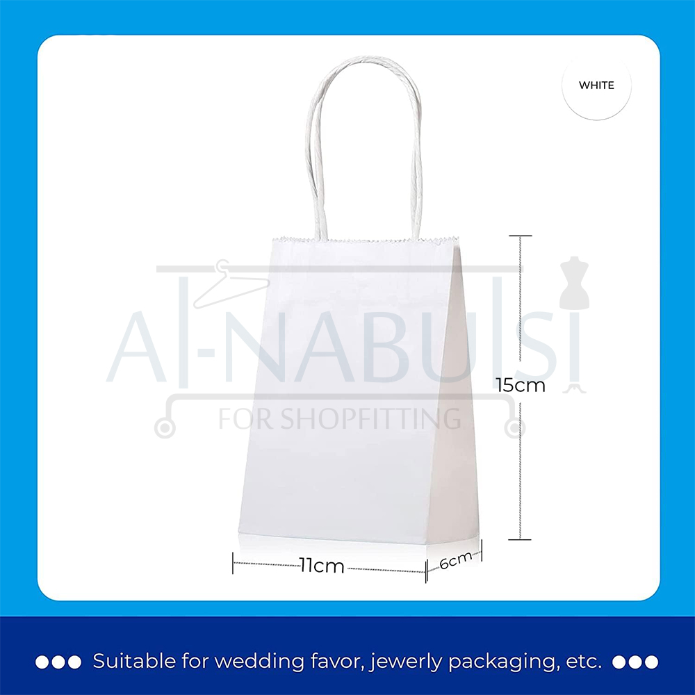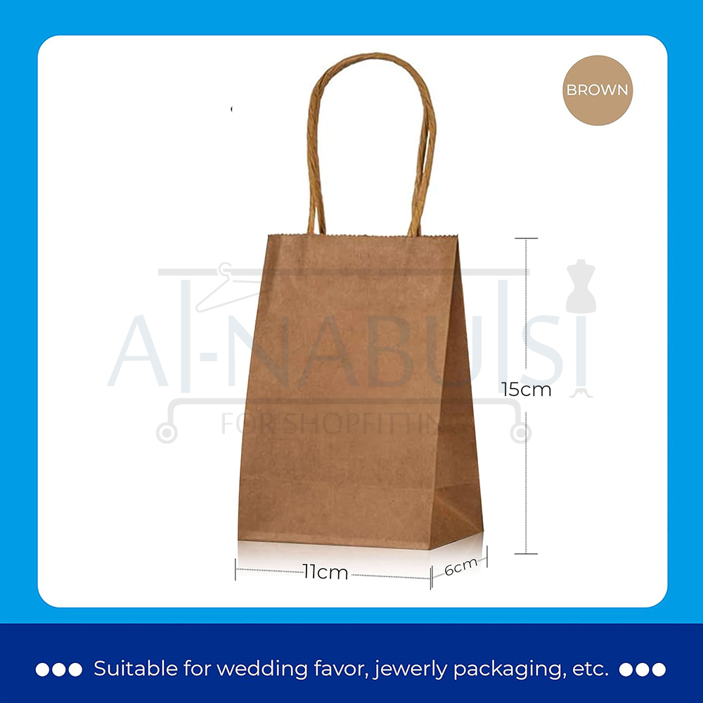 The mini burlap handle paper bag from Alnabulsi for Shopfitting is the smallest size in the collection, designed for very small premium items that still require elegant and refined packaging.