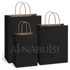 The burlap handle paper bag by Alnabulsi for Shopfitting in this size is designed to offer the perfect balance between practicality and premium presentation.